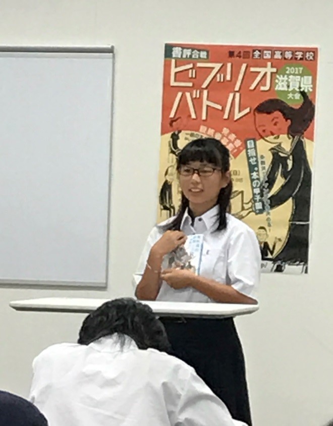 8月27日(日)に龍谷大学瀬田キャンパスにて行われた、全国高等学校ビブリオバトル2017滋賀県大会にて、2年7組の杉浦睦海さんと、1年3組の加仲未知さんが出場し、杉浦さんが2位になりました。