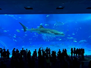 沖縄美ら海水族館ではイルカショーやジンベエザメの観賞などで楽しむことができました。